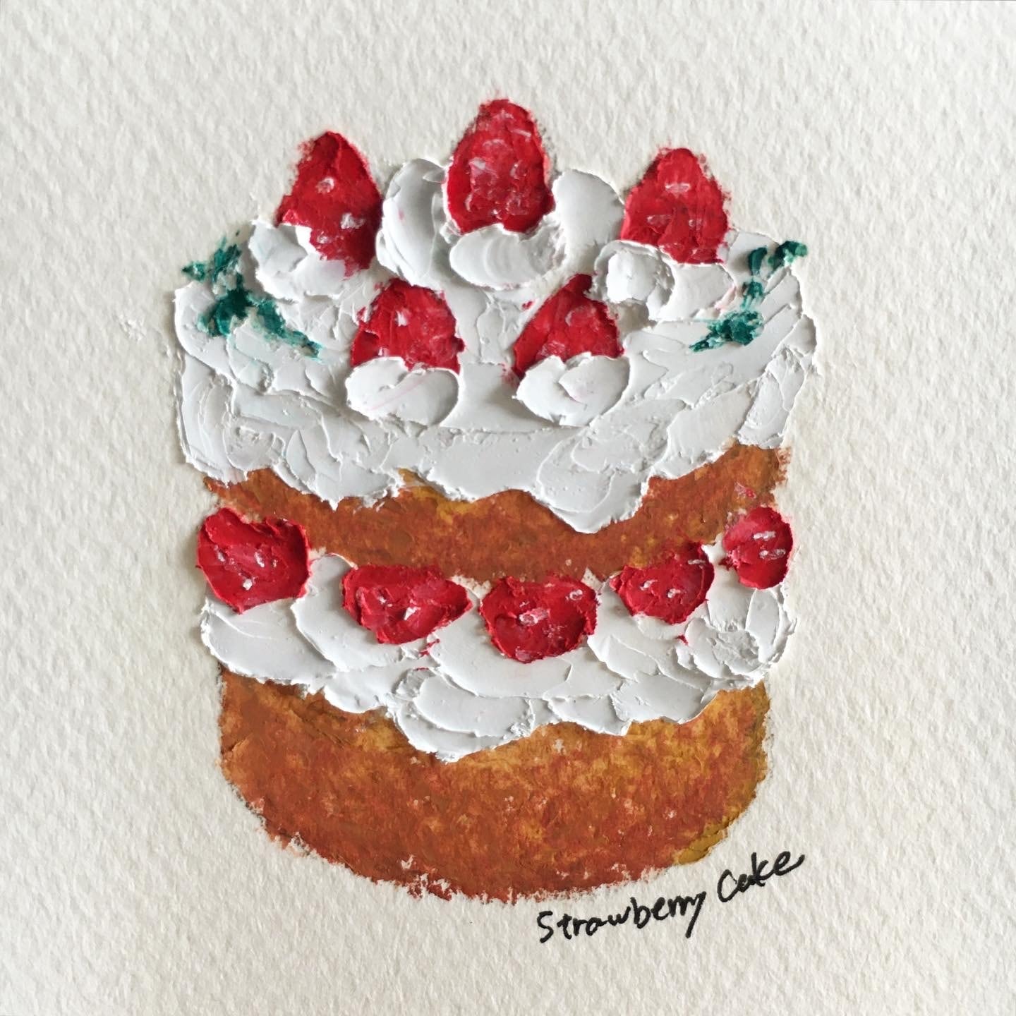 苺のショートケーキ/148mm*100mm/Oil Pastel