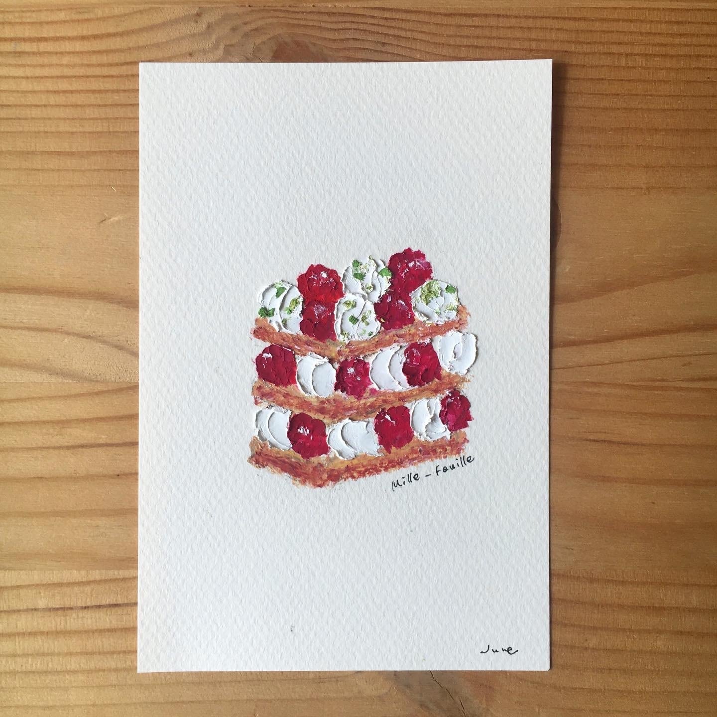 ラズベリーのミルフィーユ/148mm*100mm/Oil Pastel