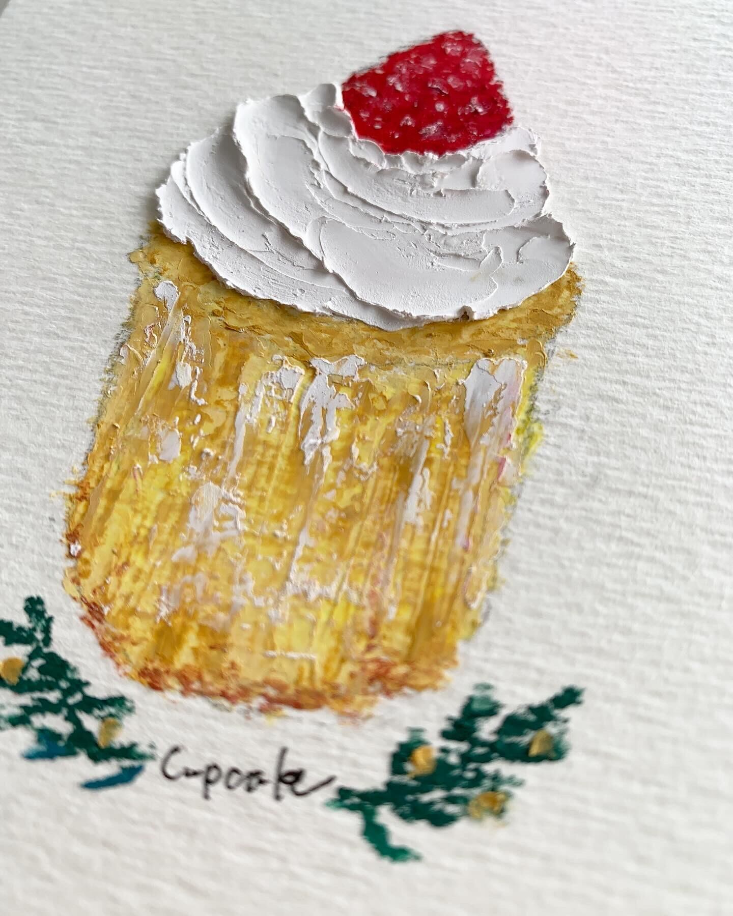 苺のカップケーキ/148mm*100mm/Oil Pastel
