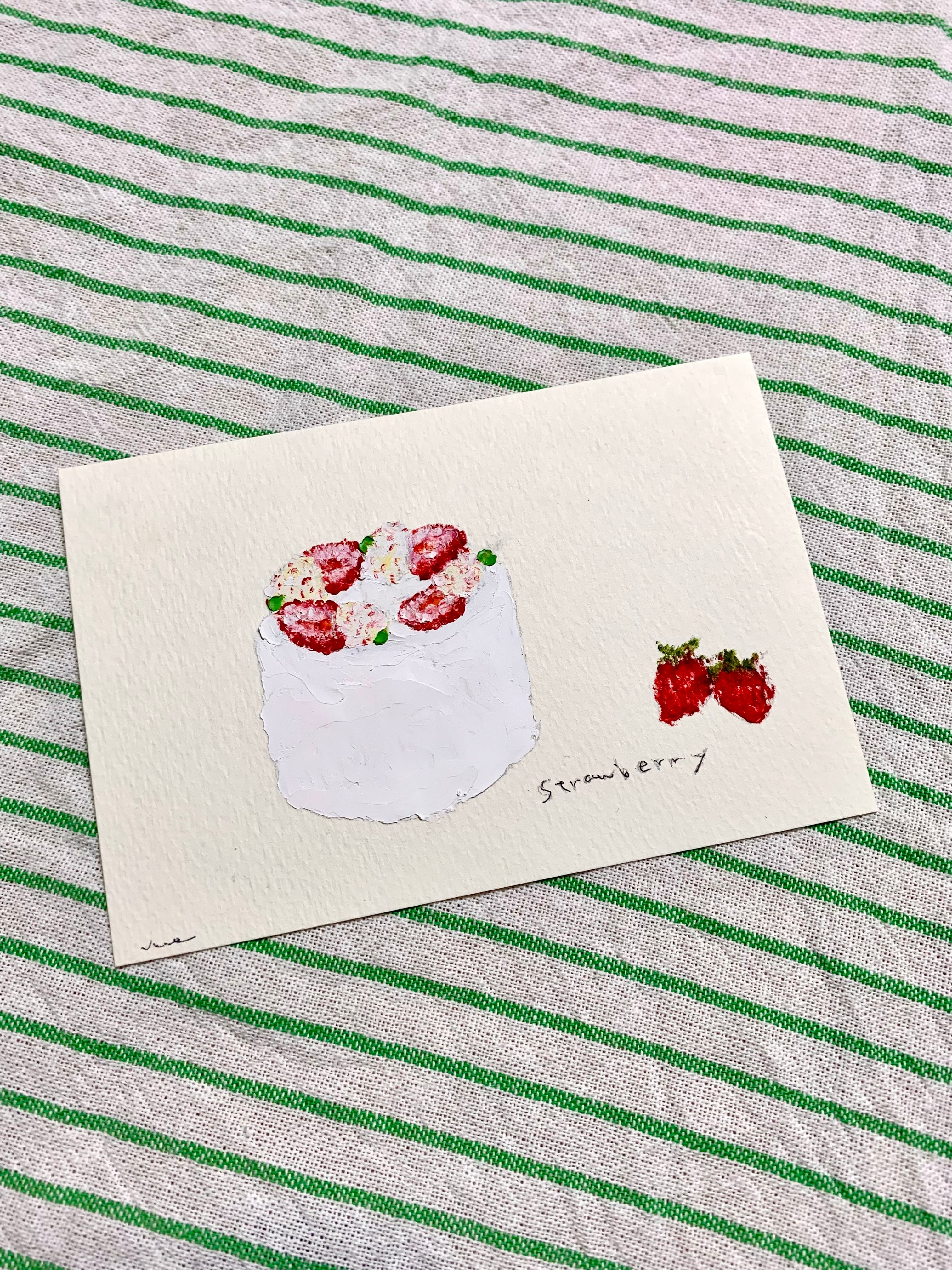 苺のショートケーキ/148mm*100mm/Oil Pastel